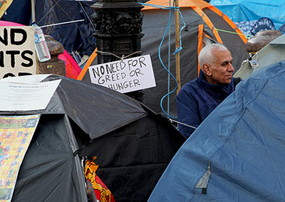 The resulting images are an intimate portrait of people asking for change to unsustainable systems. There are echoes of the 60’s counterculture revolution in images such as “occupy the sky”. This new generation of protesters is media savvy, witty, creative and fun.